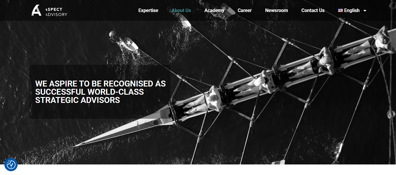 Aspect Advisory faced the common B2B challenge of low lead qualification and soft conversion. While the hero image and tagline ("DRIVE SUCCESS...") effectively conveyed partnership and collaboration, the primary problem was the lack of immediate, high-impact proof points right at the entry point. Visitors in the financial services sector are senior, time-constrained decision-makers who need immediate evidence of success. The navigation suggests that case studies and specific results are likely buried deep in the "Expertise" or "Newsroom" sections, resulting in low engagement, a lack of trust at first glance, and a high reliance on vague, bottom-of-funnel inquiries.